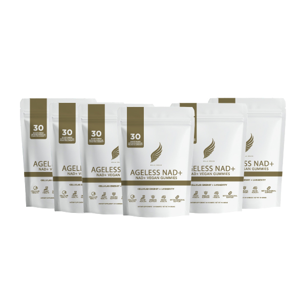 Ageless NAD+ was formulated based on emerging longevity research. Ageless NAD+ supports the pathways that help replenish NAD+ and optimize cellular performance.Formulated with NMN, the direct precursor to NAD+, alongside emergent antioxidants and sirtuin activators, this advanced blend is designed to support the enzymes responsible for mitochondrial renewal and cellular defense. It takes a multi-targeted approach to protecting and sustaining biological function at the cellular level.